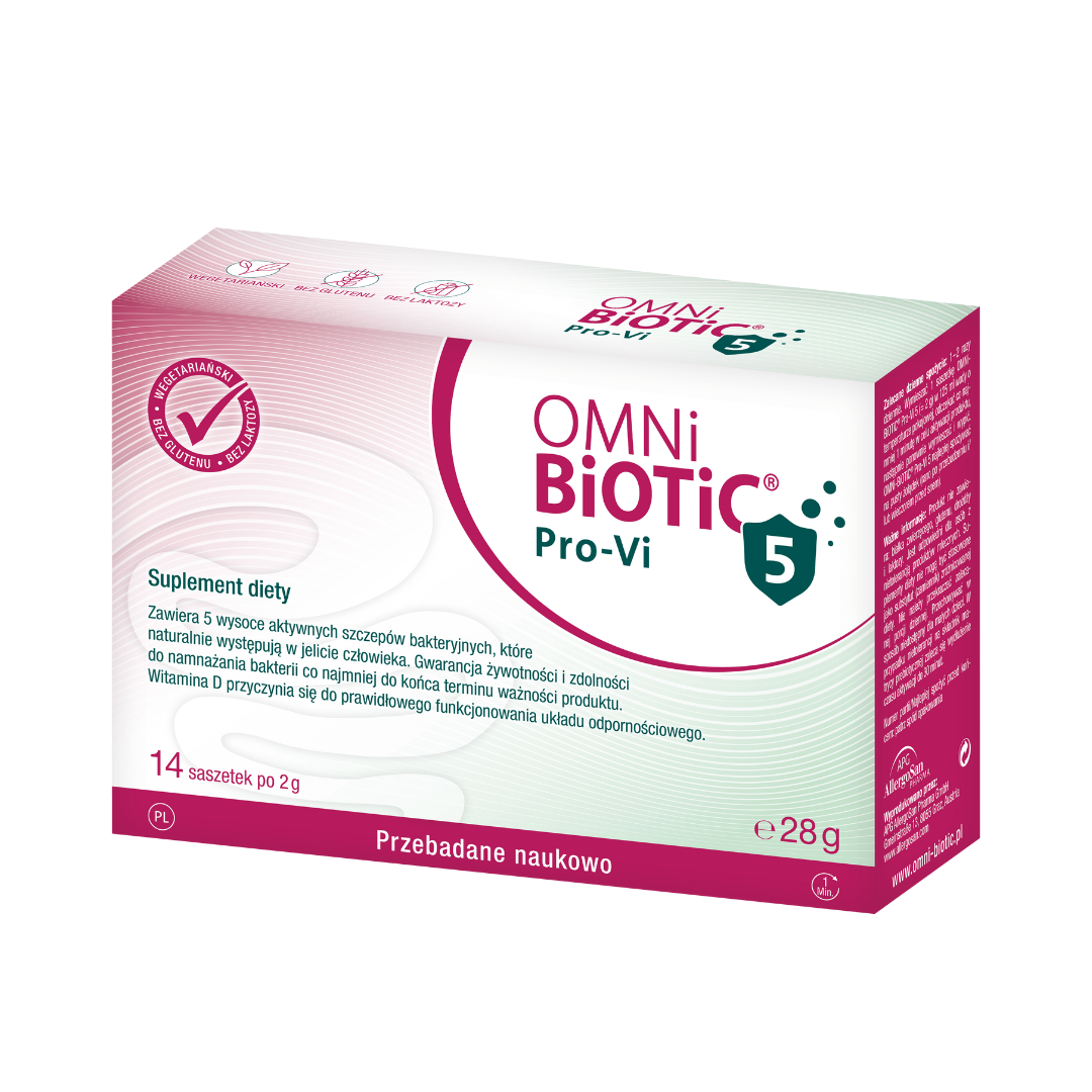 OMNi-BiOTiC®️ Pro-Vi 5 to innowacyjny i unikalny na skalę światową probiotyk, który łączy w sobie 5 specjalnie wyselekcjonowanych szczepów bakterii. Wszystkie z nich występują naturalnie w jelicie ludzkim.